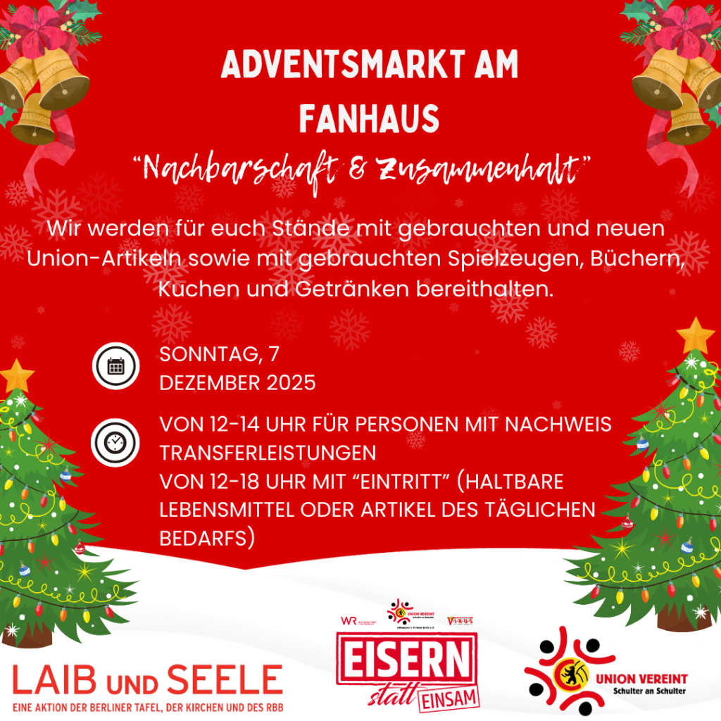 Adventsmarkt am Sonntag, dem 07.12. zwischen 12 und 18 Uhr am Fanhaus