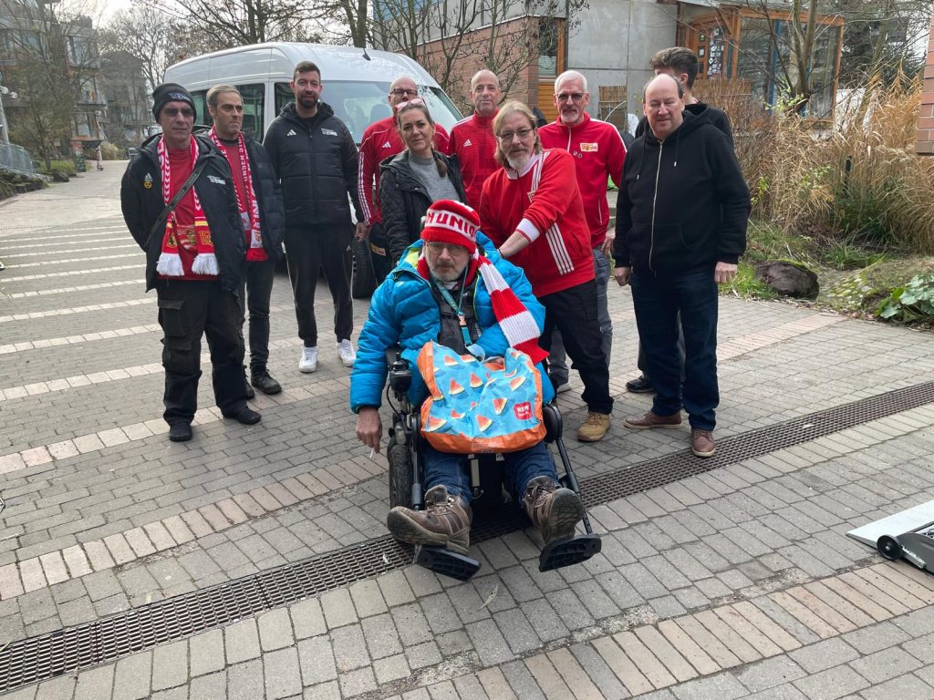 Gefahren sind wir mit zwei rollstuhlgerechten Kleinbussen – insgesamt waren 4 Rollstuhlfahrer und weitere 14 Unionfans mit und ohne Beeinträchtigung dabei.