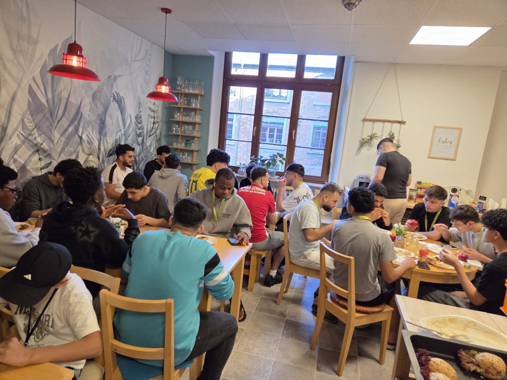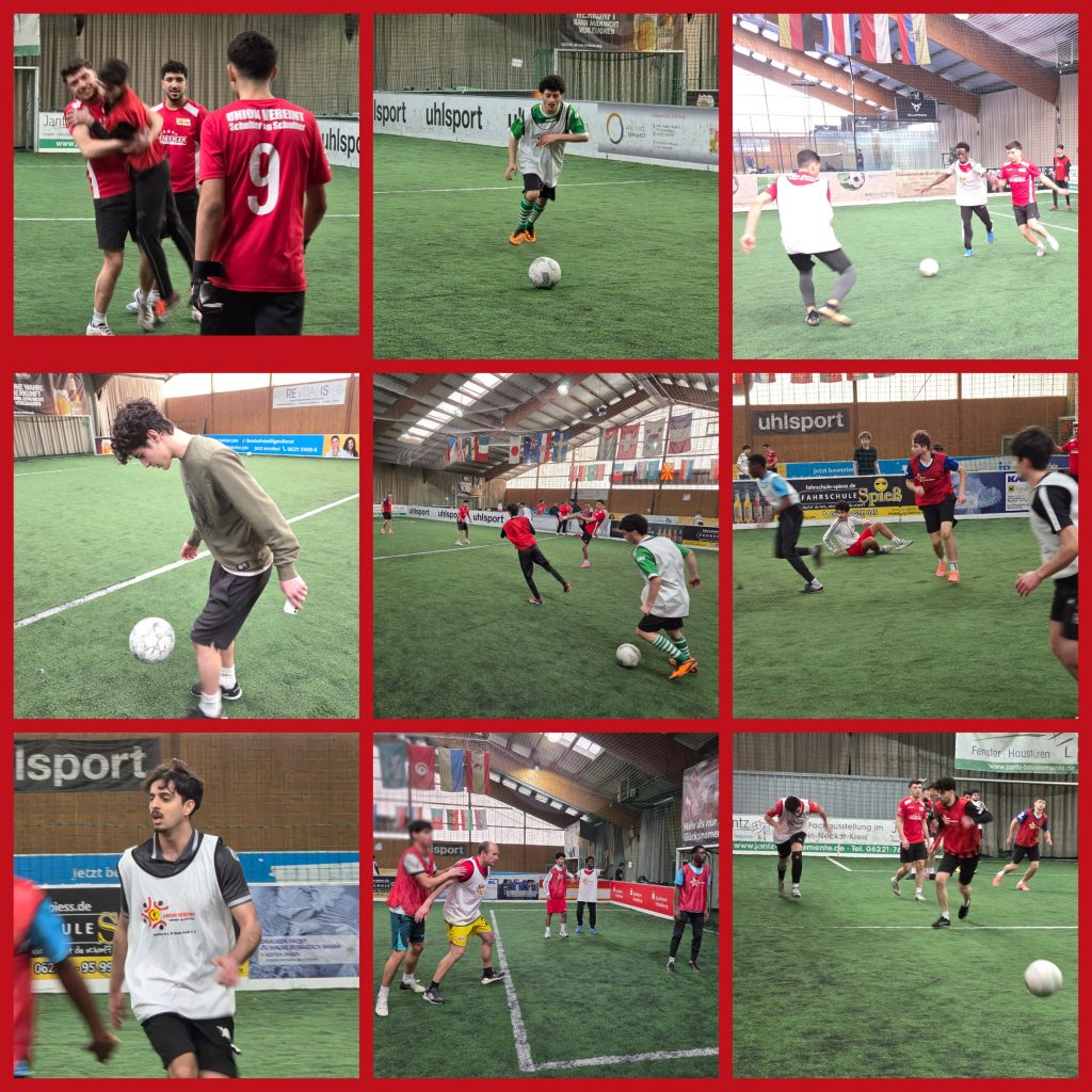 Die 13-25jährigen aus drei Einrichtungen der Internationaler Bund Berlin-Brandenburg gGmbH, einer Wohngemeinschaft von Alep e.V. sowie mehreren langjährigen Teilnehmenden, die inzwischen eine eigene Wohnung beziehen konnten, schnürten auch selbst die Fußballschuhe und spielten in der SoccArena Heidelberg ein hart umkämpftes Turnier aus.