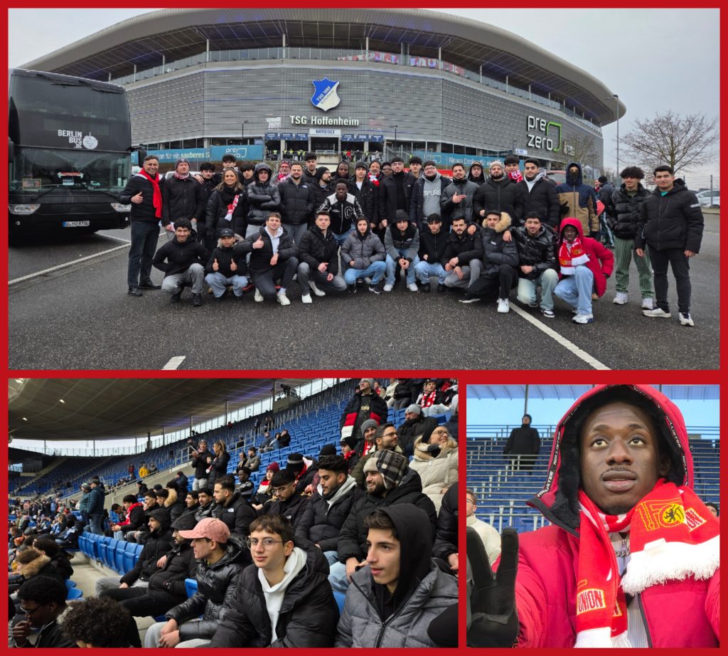 Der Zeitpunkt war perfekt: Weil das Auswärtsspiel der Union-Männer in Hoffenheim zu Beginn der Berliner Winterferien angesetzt war, konnten auch Schüler und Auszubildende an diesem Ausflug teilnehmen. Lautstark feuerten sie unsere Profis am vergangenen Samstag in der PreZero-Arena zu einer starken Leistung an, auch wenn es am Ende nicht zu Punkten reichen sollte.