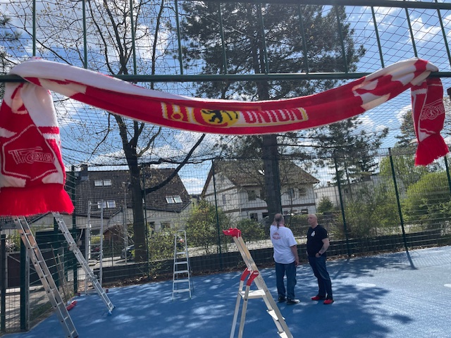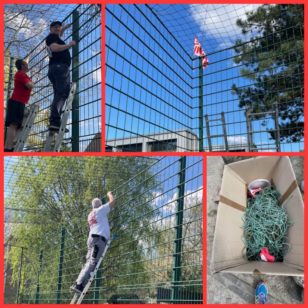 Bei strahlendem Sonnenschein trafen sich einige Mitglieder des EUFC Eiserne Kubik-Elfen in der Schule am Bienwaldring, einer Förderschule mit sonderpädagogischem Schwerpunkt. Gemeinsam mit der Stiftung des 1. FC Union e. V. sollte auf dem Bolzplatz auf dem Schulhof ein neues Fangnetz installiert werden.