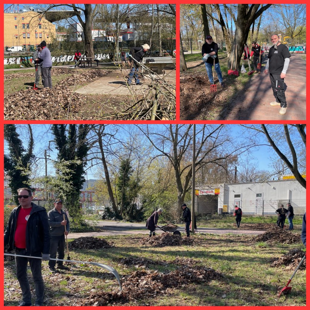 Wie gewohnt stand zunächst die gemeinsame Pflege und Reinigung der Umgebung im Mittelpunkt. Aufgrund von noch auf dem Weg befindlichem Splitt konnte der Weg in diesem Jahr nicht gekehrt werden. Stattdessen konzentrierten sich die Teilnehmer auf die Reinigung der großen Grünflächen. Dort wurden altes Laub sowie verrottetes Gras entfernt und anschließend sinnvoll als Kompost unter den Sträuchern verteilt. Auf diese Weise wurde nicht nur für ein gepflegtes Erscheinungsbild gesorgt, sondern auch ein Beitrag zur nachhaltigen Bodenverbesserung geleistet.